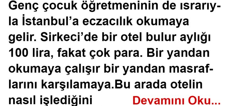 Genç çocuk öğretmeninin de ısrarıyla İstanbul’a eczacılık okumaya gelir. Sirkeci’de bir otel bulur aylığı 100 lira, fakat çok para. Bir yandan okumaya çalışır bir yandan masraflarını karşılamaya. Bu arada otelin nasıl işlediğini öğrenir. Bir...