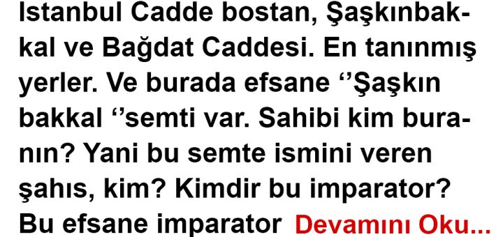 İstanbul Cadde bostan, Şaşkınbakkal ve Bağdat Caddesi. En tanınmış yerler. Ve burada efsane ‘’Şaşkınbakkal ‘’semti var. Sahibi kim buranın? Yani bu semte ismini veren şahıs, kim? Kimdir bu imparator? Bu efsane imparatorluk nasıl doğdu?...