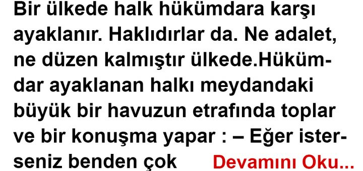 Bir ülkede halk hükümdara karşı ayaklanır. Haklıdırlar da. Ne adalet, ne düzen kalmıştır ülkede. Hükümdar ayaklanan halkı meydandaki büyük bir havuzun etrafında toplar ve bir konuşma yapar : – Eğer isterseniz benden çok kolay...
