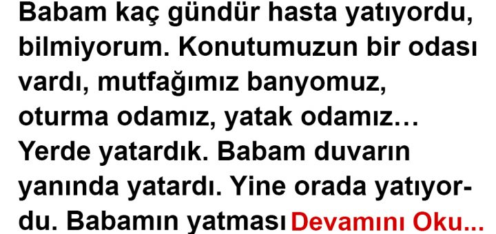 Babam kaç gündür hasta yatıyordu, bilmiyorum. Konutumuzun bir odası vardı, mutfağımız banyomuz, oturma odamız, yatak odamız… Yerde yatardık. Babam duvarın yanında yatardı. Yine orada yatıyordu. Babamın yatması demek, eve hiç para girmiyor demekti. Zaten...