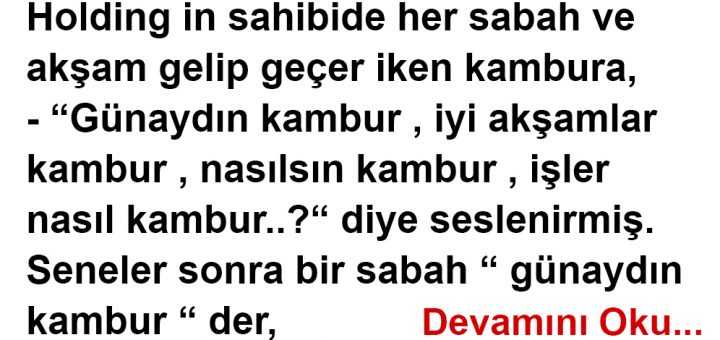 Holding in sahibi de her sabah ve akşam gelip geçer iken kambura, -“Günaydın kambur , iyi akşamlar kambur , nasılsın kambur , işler nasıl kambur..?“ diye seslenirmiş . Seneler sonra bir sabah “ günaydın...
