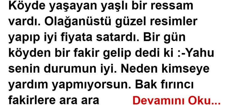 Köyde yaşayan yaşlı bir ressam vardı. Olağanüstü güzel resimler yapıp iyi fiyata satardı. Bir gün köyden bir fakir gelip dedi ki : -Yahu senin durumun iyi. Neden kimseye yardım yapmıyorsun. Bak fırıncı fakirlere ara...