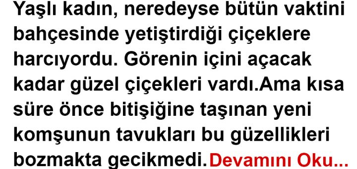 Yaşlı kadın, neredeyse bütün vaktini bahçesinde yetiştirdiği çiçeklere harcıyordu. Görenin içini açacak kadar güzel çiçekleri vardı. Ama kısa süre önce bitişiğine taşınan yeni komşunun tavukları bu güzellikleri bozmakta gecikmedi. Kolayca onun bahçesine geçen tavuklar...