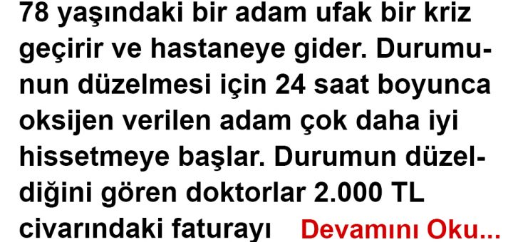 78 yaşındaki bir adam ufak bir kriz geçirir ve hastaneye gider. Durumunun düzelmesi için 24 saat boyunca oksijen verilen adam çok daha iyi hissetmeye başlar. Durumun düzeldiğini gören doktorlar 2.000 TL civarındaki faturayı getirince...