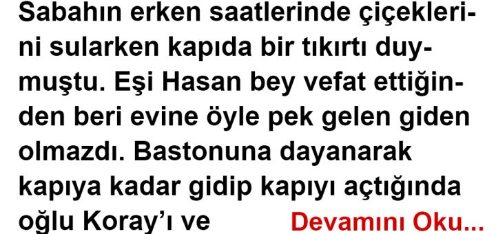 Sabahın erken saatlerinde çiçeklerini sularken kapıda bir tıkırtı duymuştu. Eşi Hasan bey vefat ettiğinden beri evine öyle pek gelen giden olmazdı. Bastonuna dayanarak kapıya kadar gidip kapıyı açtığında oğlu Koray’ı ve torunlarını gördüğünde içi...
