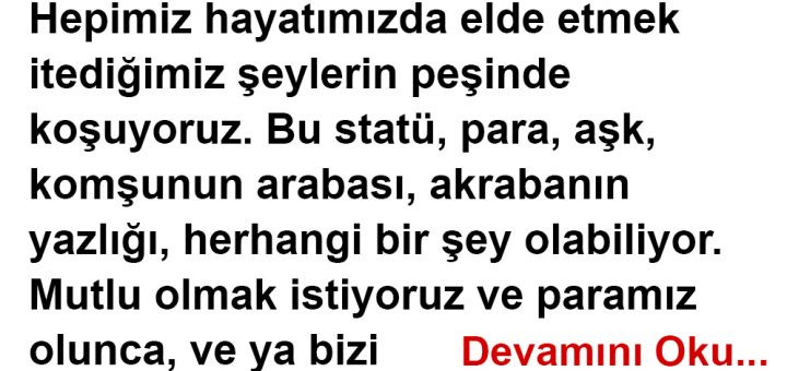 Hepimiz hayatımızda elde etmek istediğimiz şeylerin peşinde koşuyoruz. Bu statü, para, aşk, komşunun arabası, akrabanın yazlığı, herhangi bir şey olabiliyor. Mutlu olmak istiyoruz ve paramız olunca, ve ya bizi terk eden sevgili geri dönünce...