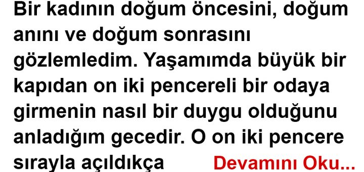 1998 yılıydı; İstanbul (Çapa) Tıp Fakültesi’nde öğrenci olduğum yıllardı. Doğum servisinde bir gece iki saat kalıp, bu iki saat içinde on iki doğum izlemiştim. Bir kadının doğum öncesini, doğum anını ve doğum sonrasını gözlemledim....