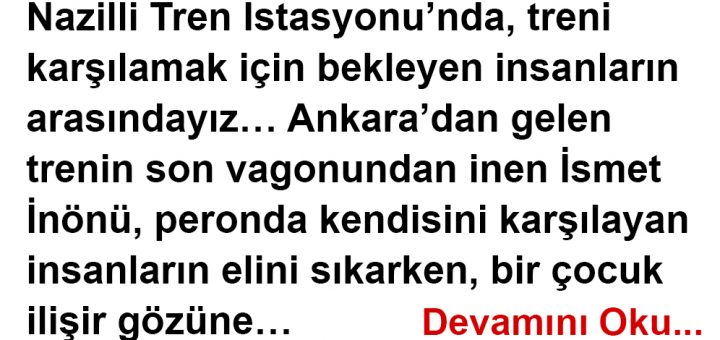 Nazilli Tren İstasyonu’nda, treni karşılamak için bekleyen insanların arasındayız… Ankara’dan gelen trenin son vagonundan inen İsmet İnönü, peronda kendisini karşılayan insanların elini sıkarken, bir çocuk ilişir gözüne… Beş-altı yaşlarında olan çocuk, elinde testi ve...