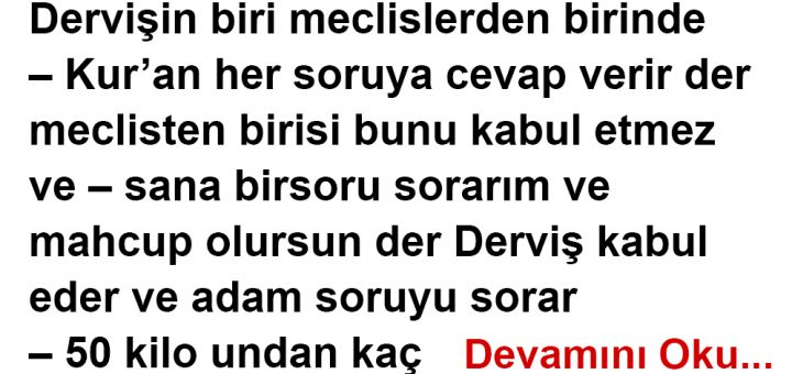 Dervişin biri meclislerden birinde – Kur’an her soruya cevap verir der meclisten birisi bunu kabul etmez ve – sana bir soru sorarım ve mahcup olursun der Derviş kabul eder ve adam soruyu sorar –...
