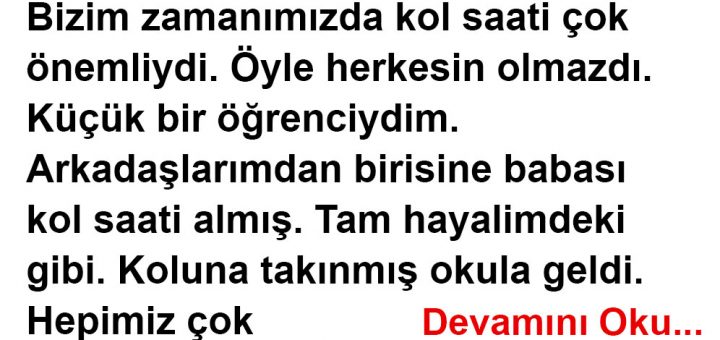 Bizim zamanımızda kol saati çok önemliydi. Öyle herkesin olmazdı. Küçük bir öğrenciydim. Arkadaşlarımdan birisine babası kol saati almış. Tam hayalimdeki gibi. Koluna takınmış okula geldi. Hepimiz çok beğendik. Çocukluk işte benim asla böyle bir...