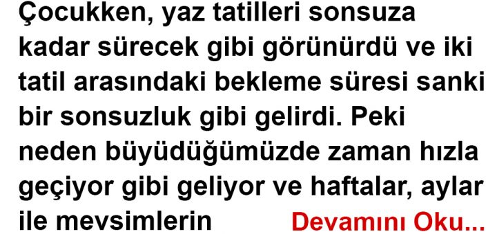 Çocukken, yaz tatilleri sonsuza kadar sürecek gibi görünürdü ve iki tatil arasındaki bekleme süresi sanki bir sonsuzluk gibi gelirdi. Peki neden büyüdüğümüzde zaman hızla geçiyor gibi geliyor ve haftalar, aylar ile mevsimlerin tümü, bulanık...