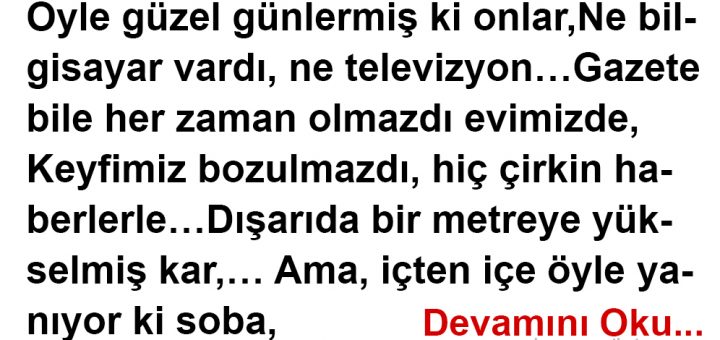 Öyle güzel günlermiş ki onlar, Ne bilgisayar vardı, ne televizyon… Gazete bile her zaman olmazdı evimizde, Keyfimiz bozulmazdı, hiç çirkin haberlerle… Dışarıda bir metreye yükselmiş kar, … Ama, içten içe öyle yanıyor ki soba,...