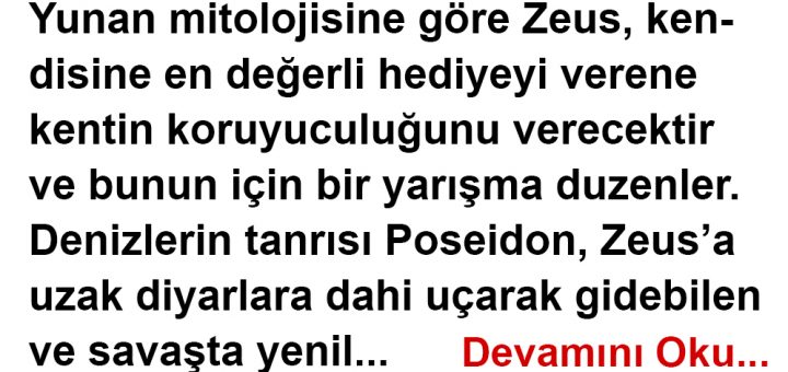 Yunan mitolojisine göre Zeus, kendisine en değerli hediyeyi verene kentin koruyuculuğunu verecektir ve bunun için bir yarışma duzenler. Denizlerin tanrısı Poseidon, Zeus’a uzak diyarlara dahi uçarak gidebilen ve savaşta yenilmeyecek bir at armağan eder....