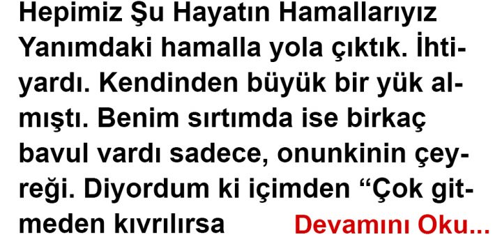 Bir karı koca barda oturmuş içkilerini yudumlarlarken içeriye gayet hoş ve alımlı bir bayan girer. Adamın yanından geçerken yanağından bir makas alıp nasılsın hayatım görüşemiyoruz bu aralar der. Adamın karısı yarı kızgınlık yarı şaşkınlık...